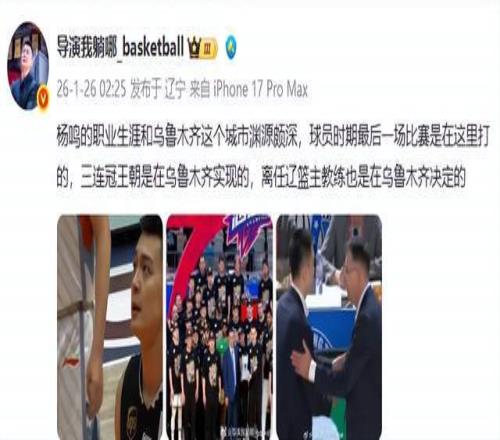 杨鸣执教辽宁男篮6个赛季,5次率队打进总决赛,3次夺得总冠军,创造了辽宁篮球的黄金时代。但本赛季的溃败成为压垮骆驼的最后一根稻草。媒体人"导演我躺哪"透露:"杨鸣在乌鲁木齐主动提出辞职,这座城市见证了他球员时代的谢幕战,也见证了三连冠王朝的辉煌,如今又成为他执教生涯的转折点。"